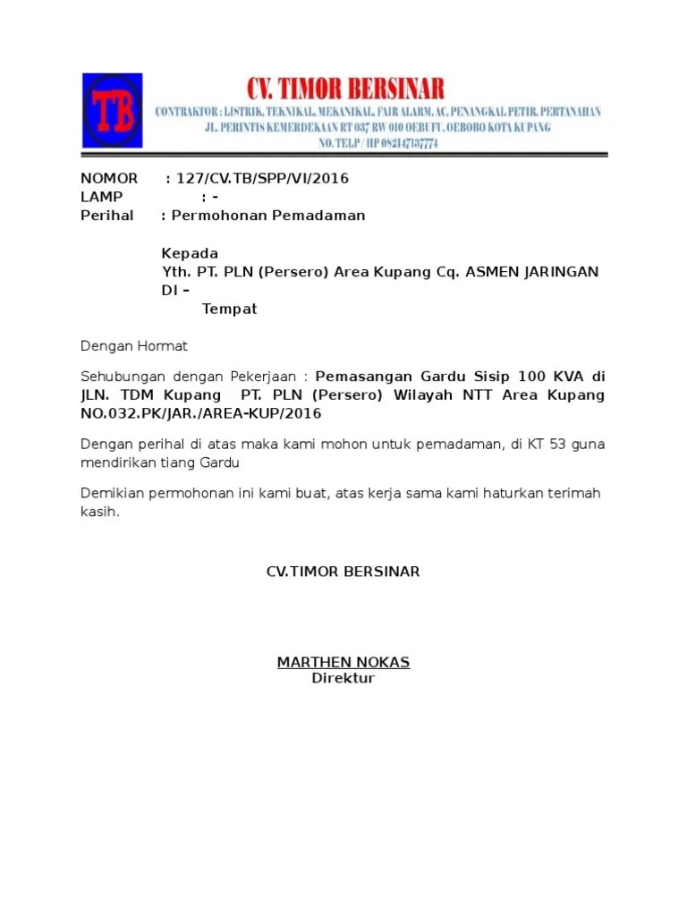 Contoh Surat Permohonan Pemadaman Ke Pln Untuk Tidak Melakukan Pemadaman - Surat Pemberitahuan Pemadaman Pln Pdf / Permohonan tidak ada pemadaman listrik.